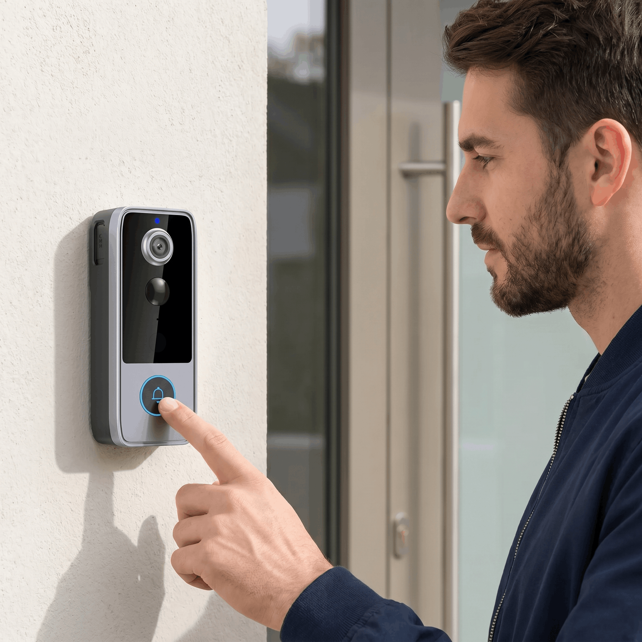Man using the Marcherelle Camera Doorbell with two-way audio